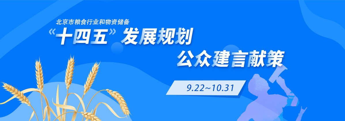 粮食和物资储备是国家安全体系的重要组成部分,是保障改善民生、提高国家治理能力、应对各种突发自然灾害和公共事件的重要支撑。“十四五”时期是粮食和物资储备高质量发展的关键阶段,是构建统一的国家物资储备体系的重要攻坚期,做好“十四五”规划编制工作意义重大。为深入贯彻习近平总书记对“十四五”规划编制工作的重要指示要求,开门问策、集思广益,把加强顶层设计和坚持问计于民统一起来,现开展“十四五”规划公众建言活动,欢迎广大群众和社会各界为北京粮食行业和物资储备未来五年的发展建言献策,共同绘就粮食和物资储备工作的发展蓝图。