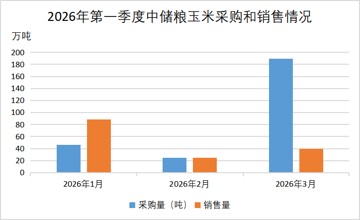 2025第四季度中储粮玉米销售计划减少,12月仅公开销售了153吨。新年伊始,竞价销售数量逐步上升,今年一季度共销售各年份玉米152.8万吨。采购方面,中储粮上年第四季度共采购玉米184.4万吨,今年一季度采购玉米260.2万吨,新粮上市以来两个季度共采购玉米444.6万吨。今年一季度购销双向共成交玉米173万吨。