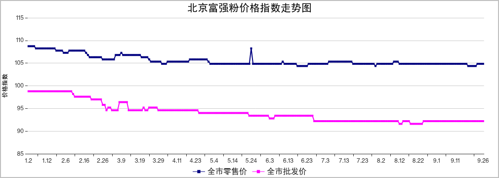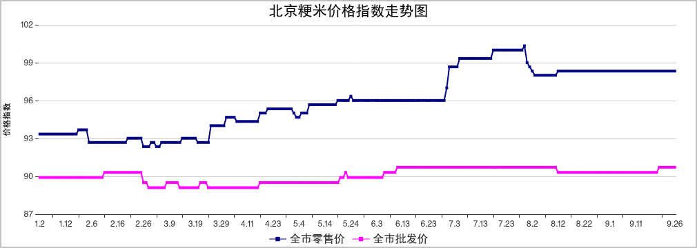 北京市场粮油价格指数图(截止到2025年09月26日)