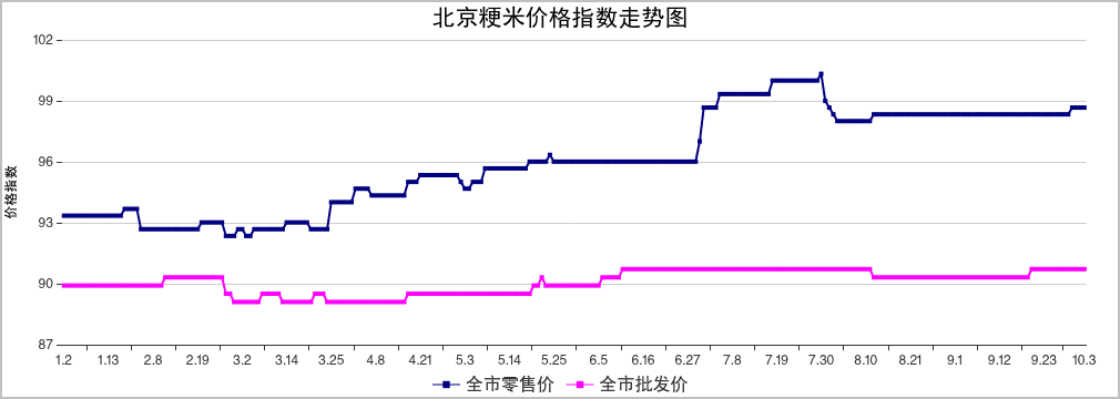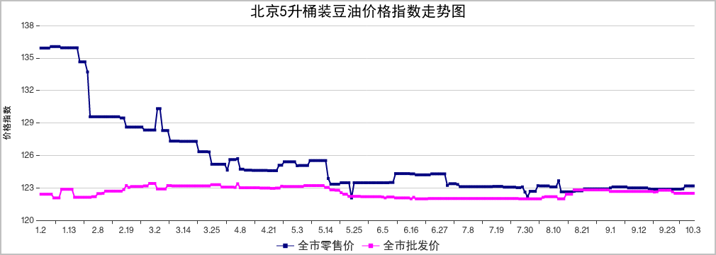 北京市场粮油价格指数图(截止到2025年10月03日)