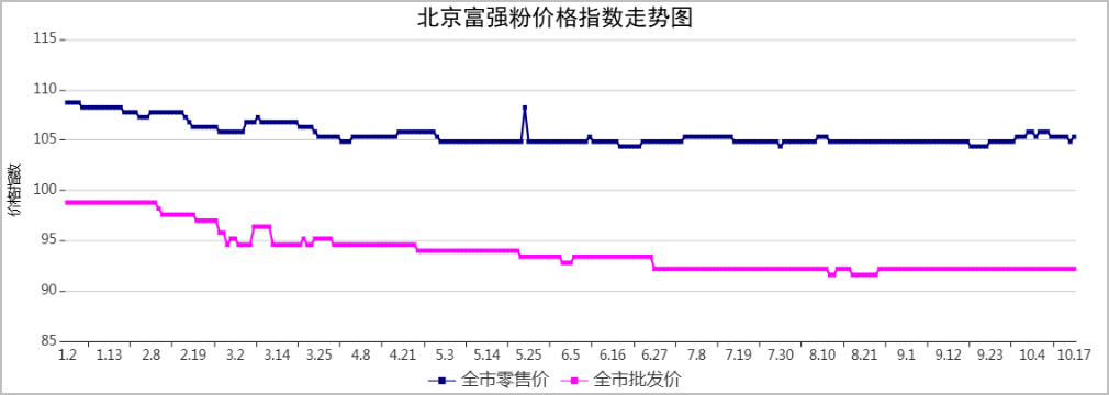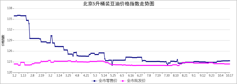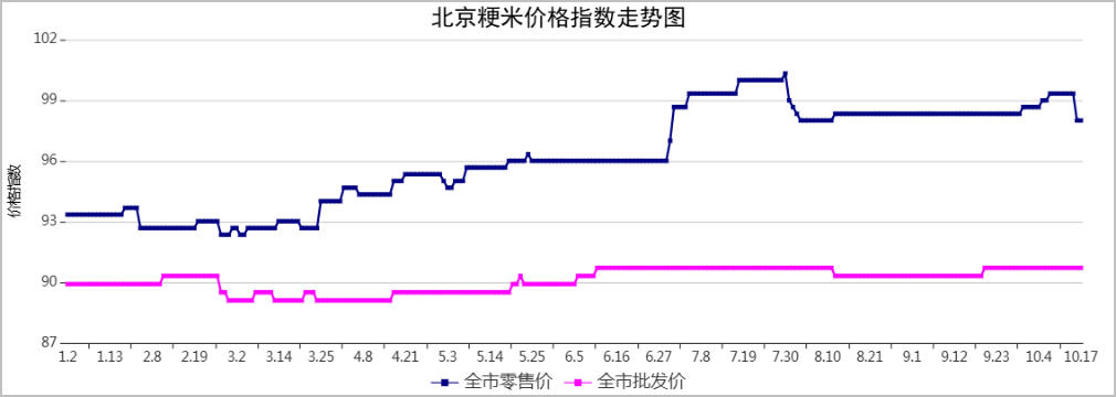 北京市场粮油价格指数图(截止到2025年10月17日)